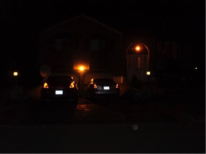 Since winter is almost here, my husband decided to fix everything in our house including the garage bulb and 2 little lamps found in each side of the garage. Surprisingly, the technician found nothing wrong with the garage bulb it was only a little loose switch from the main electricity box! He checked all lights and everything was working properly… It was interesting to see all the outdoor lights on for the very first time since we moved in, so I decided to bring my digital camera and take few pictures. I took so many pictures and never crossed my mind anything else than seeing my house shining like a diamond…