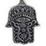 Evil Eye: The symbol of a dreadful, fabled curse (believed to bring sickness, death, bad luck loss…). This “evil eye” has frightened people in many parts of the world through the centuries. Here it looks like a female eye on the “Hand of Fatima,” but its shape varies with the culture