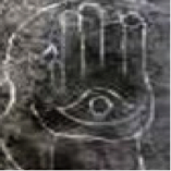 Hand Of Fatima (Daughter Of Muhammad) Or Khamsa (Five): Many Muslims believe that the image of the hand with an eye in the center will protect them from the evil eye While this symbol often appears on magical charms, amulets, and jewelry; it is seen in many other places. This Khamsa seems to be the same as the Jewish Hasma (Many serious Muslims view this as folklore or superstition