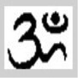 OM: Sanskrit letters or symbol for the “sacred” Hindu sound OM (ohm or aum) called “the mother of all mantras. Apparently, the four parts symbolize four stages of consciousness: Awake, sleeping, dreaming, and a trance or transcendental state