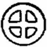 Circle (Quartered):Thesacred circlefilled with a cross,four equal lines pointing from the center to the spirits of the north, east, south, and west— or to the basic element: earth, water, air (or wind), and fire. In Native American traditions, it forms the basic pattern of theMedicine Wheel and plays a vital part in major spiritual rituals. Many contemporary pagans consider it their main symbol for transmitting the energy of the goddess. (sun wheel) Churches have used variations of the same popular shape, usually calling it theCeltic Cross