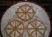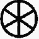 Wheel: A universal symbol of cosmic unity, astrology, “the circle of life,” evolution, etc. The pagan sacred circle plus any number of radiating spokes or petals form the wheel – a Wheel of Life to Buddhists, a Medicine Wheel to Native Americans, a Mandala to Hindus. It symbolizes unity, movement, the sun, the zodiac, reincarnation, and earth’s cycles of renewal. Pagans use it in astrology, magic and many kinds of rituals. This SUN WHEEL became a magical amulet to the Celtic Gaels in Europe. Later, “Christians adopted the form, changing it slightly, so that it became a Christ monogram drawn within a circle
