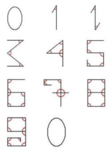 He based his new system on counting angles for each number in the following format: