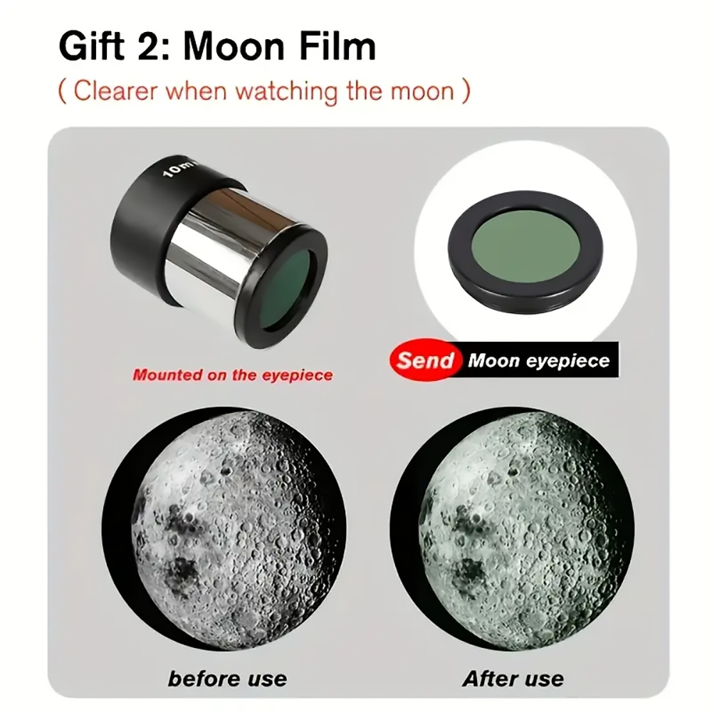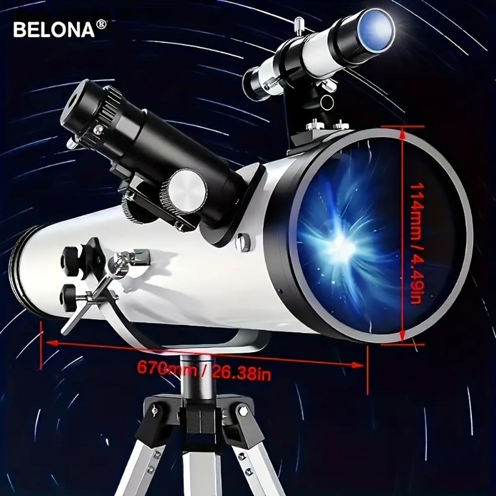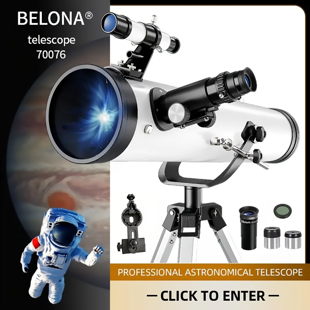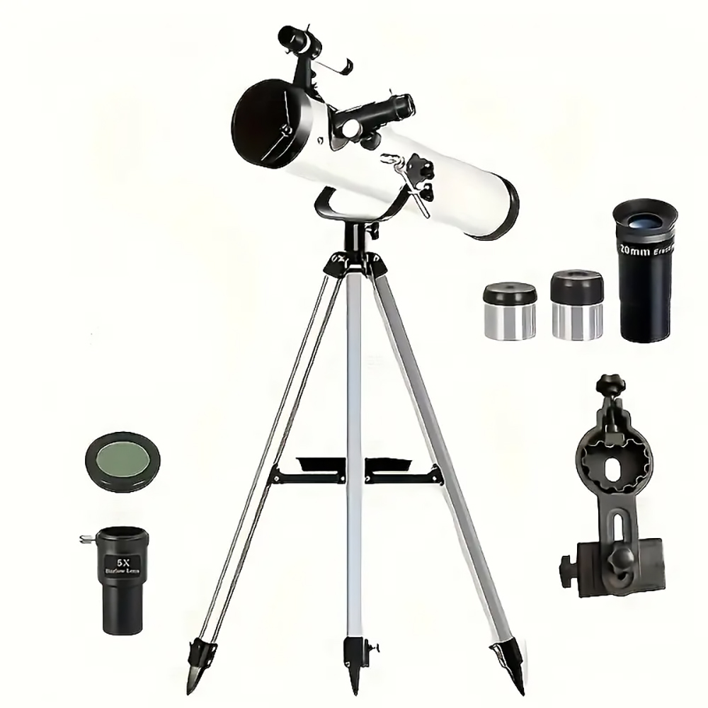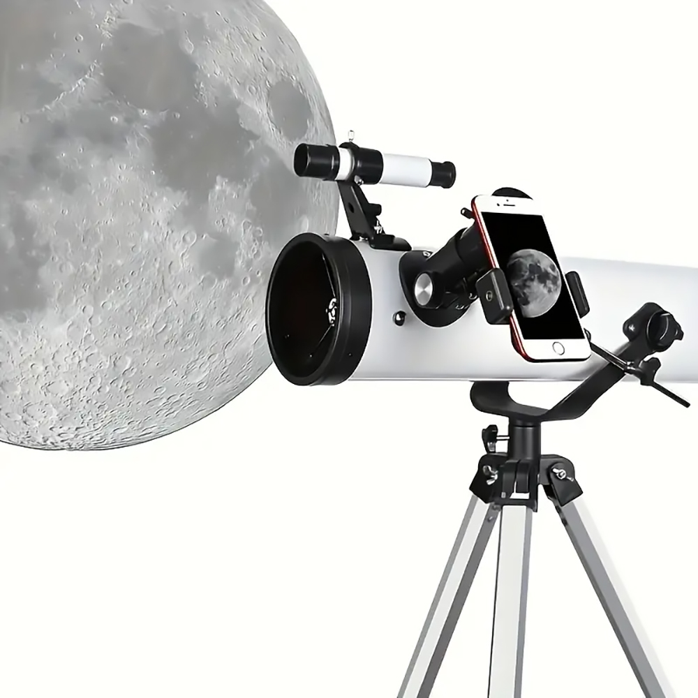 Discover the wonders of the night sky with this powerful reflecting telescope, featuring a 76mm aperture and 700mm focal length for exceptional celestial views. The multi-coated optics ensure high light transmission for clearer observations of birds, planets, and the moon’s intricate details. This telescope comes equipped with a convenient mobile phone holder for astrophotography, plus a specialized moon filter to enhance lunar viewing. The manual focus system and erect-image eyepiece allow for precise adjustments, offering magnification up to 875x. Perfect as a Christmas or birthday gift, this telescope provides an excellent introduction to astronomy. The complete set includes essential accessories to start your stargazing journey straight away. Whether you’re interested in bird watching or planetary observation, this versatile instrument opens up new possibilities for exploration of the natural world.